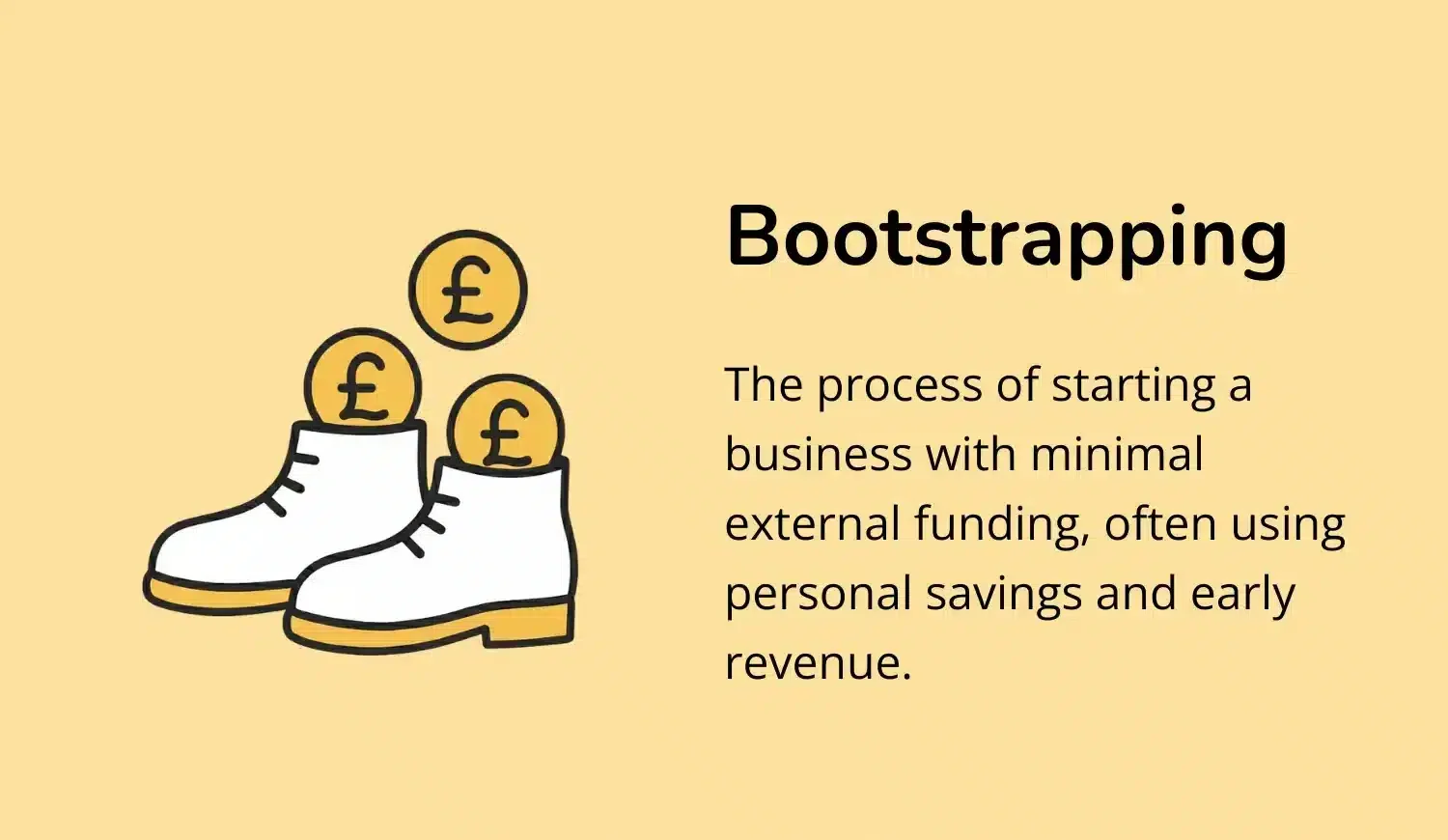 - Bootstrapping means funding your startup through founder capital and revenue instead of external investors.